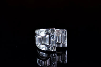 Country : France Material : Platinum & Diamonds Size : 17 (日本サイズ) 1940年代にフランスで造られたタンクリング。 立体的な造形に飽き足らず、全てのダイヤモンドがバケットカットにされている。 タンクリングの中でも最上級に位...