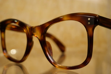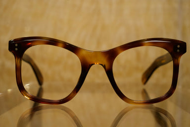 Country : France Material: French Zyl Color : Tortoise (トートイズ) Size : 44-24 1950年代に製作されたフランス製のアイウェア。 飴細工のような艶感、若干吊り上がったレンズシェイプ、根本から先端にかけて徐々に太くなるようデ...