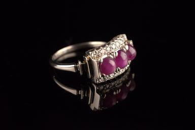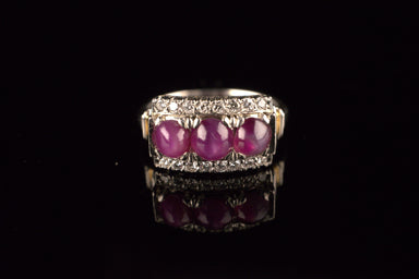 Country : Japan Material : Platinum & Star Ruby & Diamonds Size : 8 Comment : 1970年代に日本で製作されたジュエリー。 当時はコンピューターの普及が進んでおらず、職人がハンドスケッチでデザインしてい...