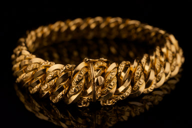 Country : France Matelal : 18K Yellow Gold Size : 18cm Comment: イーグルヘッド(鷲の顔)が刻印されたフランス製ブレスレット。 数珠のように繋がったリンクがオリエンタルな雰囲気を醸し出す。 イーグルヘッドの刻印が刻まれた18金は国...