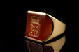 深みのある緋色のカーネリアンを印台に据えた、1920年代にオーストリアで造られたシグネットリング。